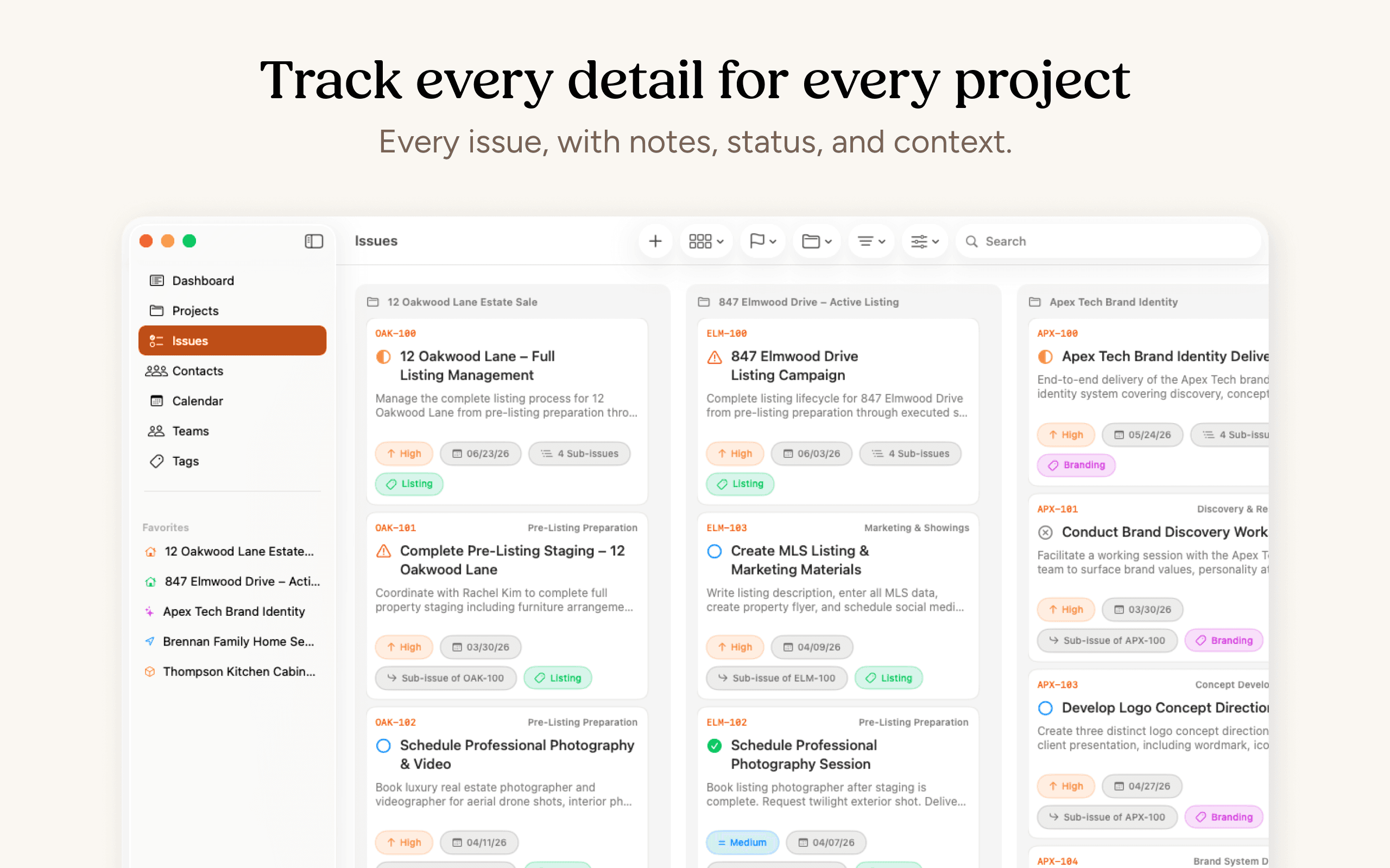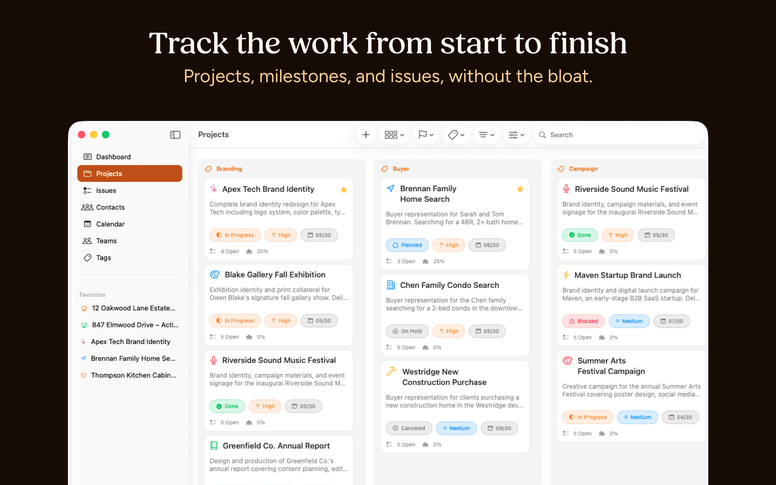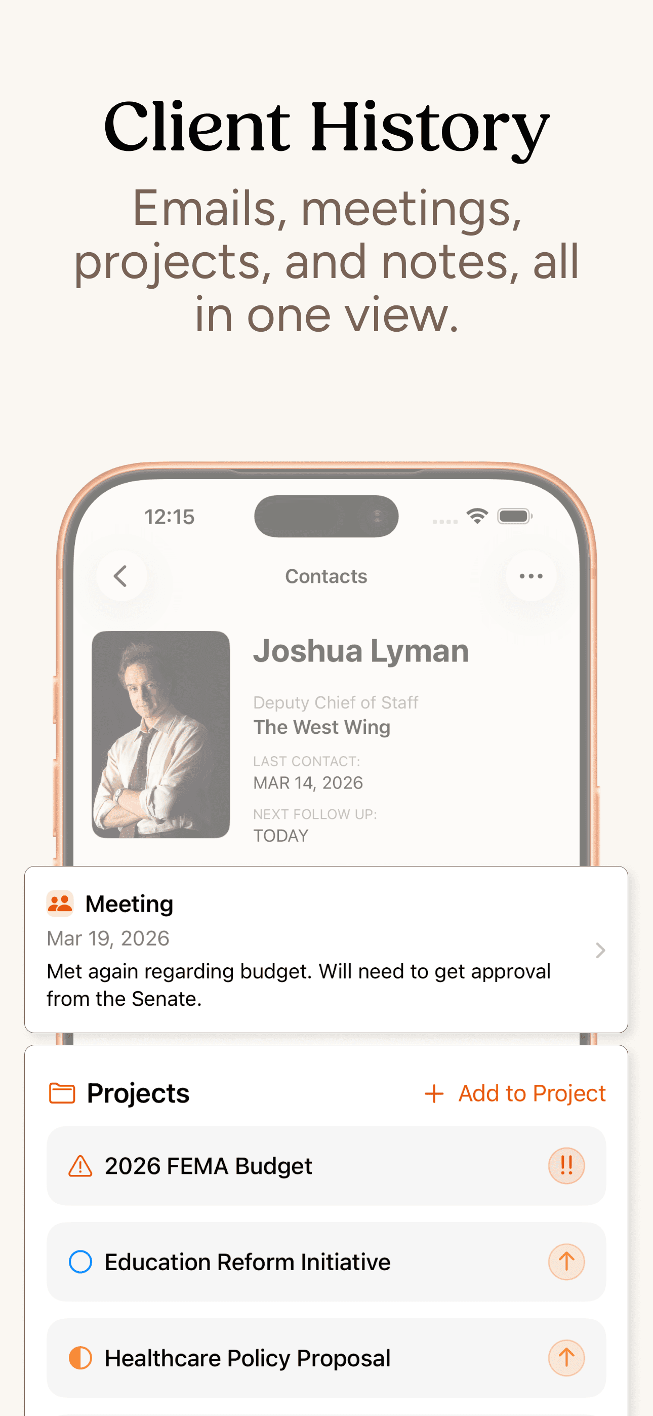 Clients keeps your contacts, notes, and projects in one app, so you always know the status before you pick up the phone, go into a meeting, or answer that email.