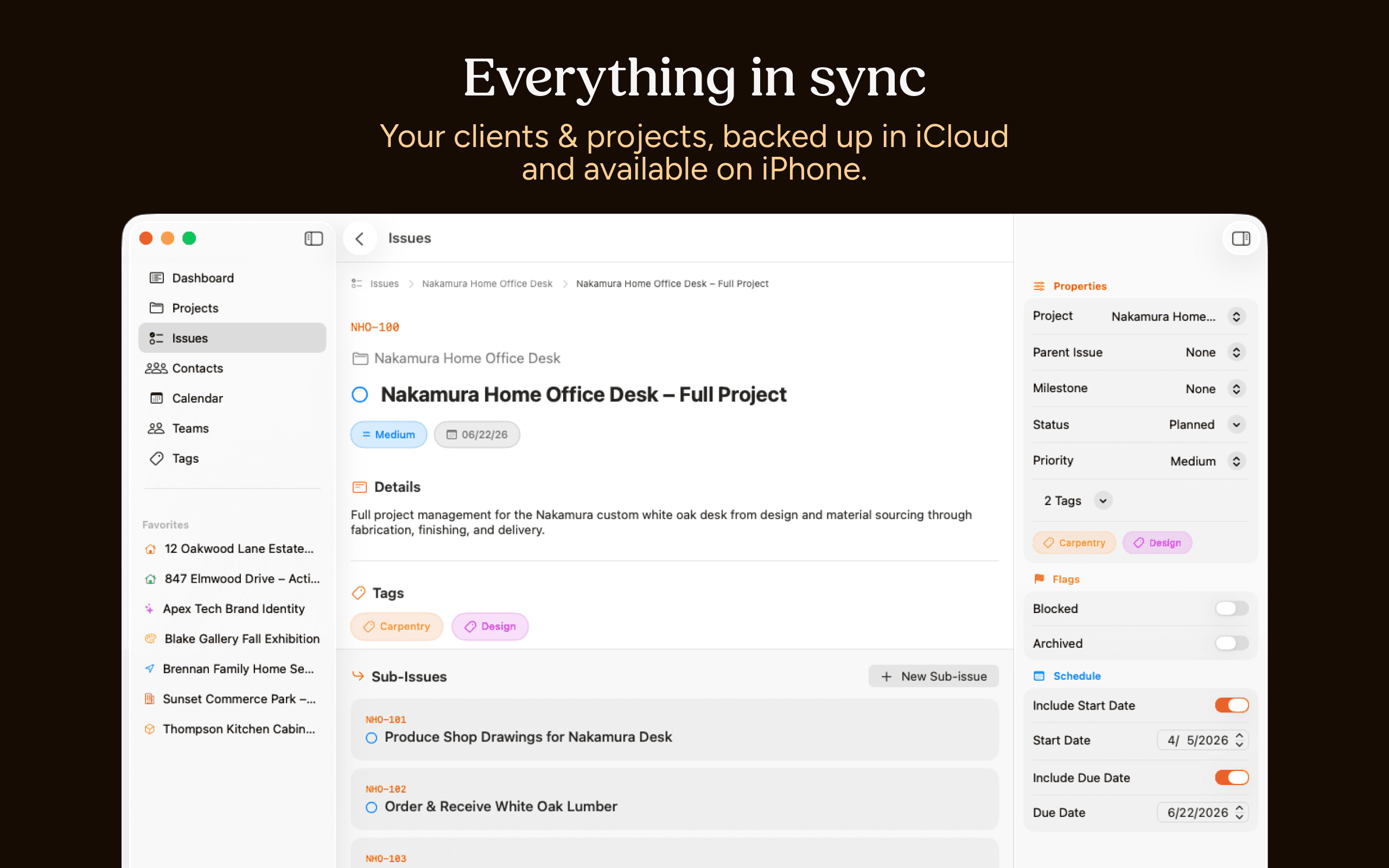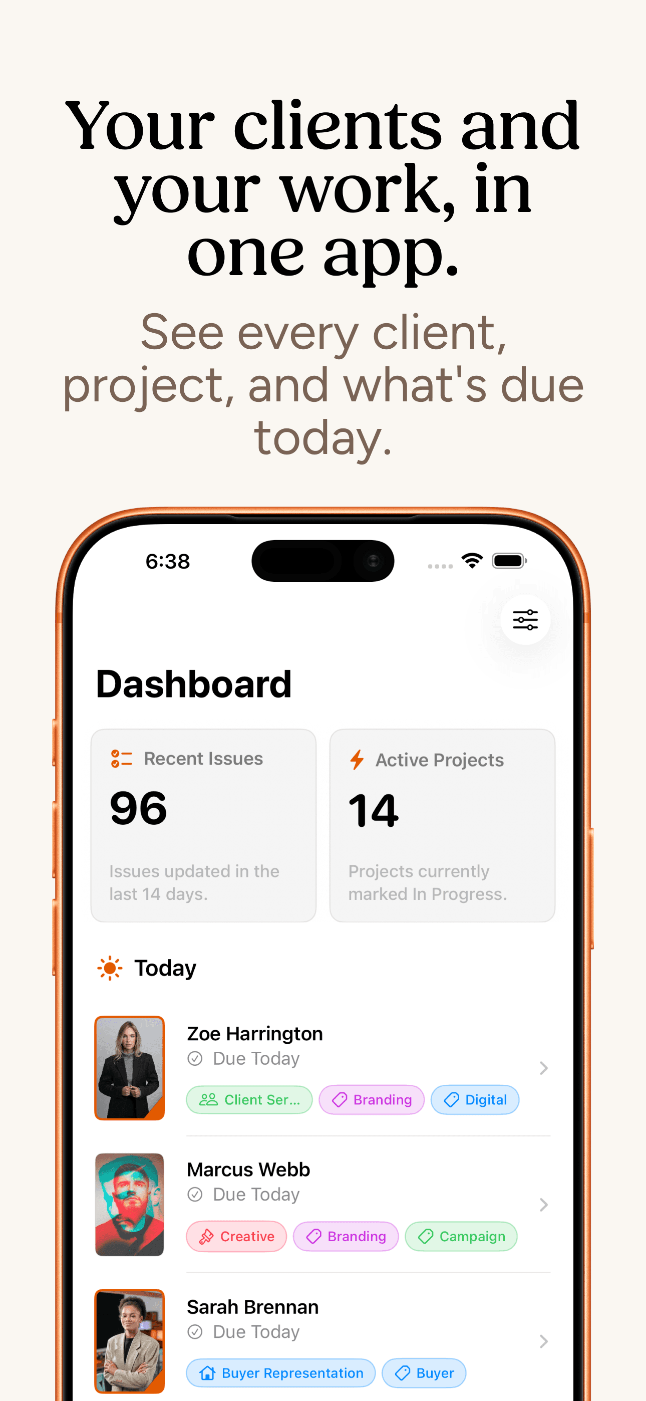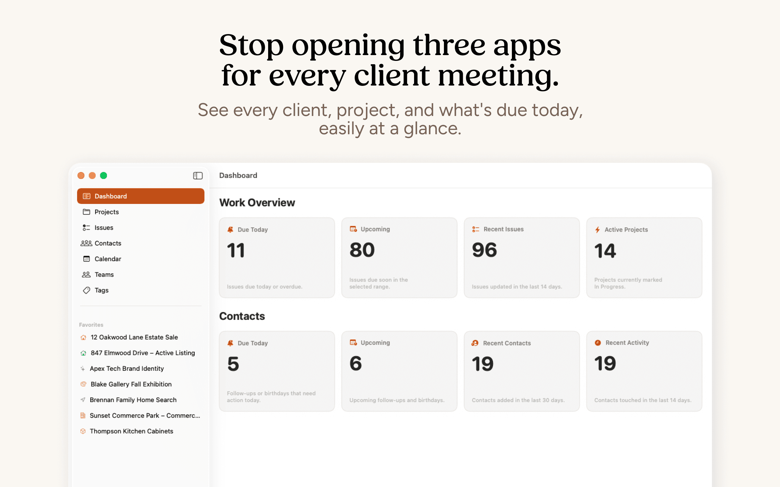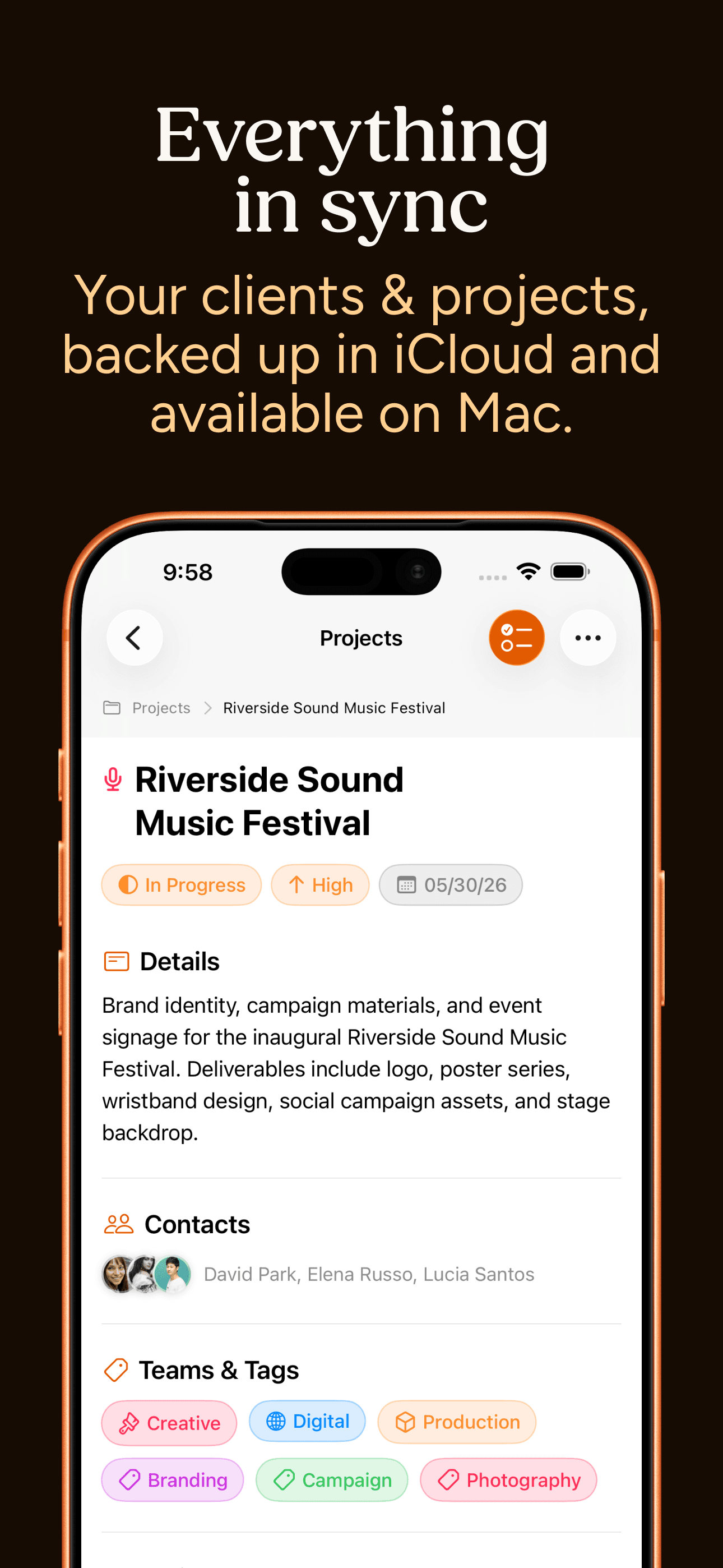 Clients is a native iPhone and Mac app that connects your client history, follow-ups, and projects in one place so you have the everything you need in one app.